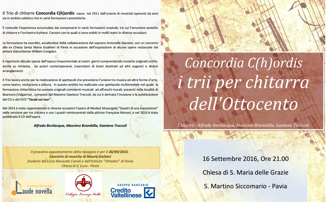 Concerto “I TRII PER CHITARRA DELL’OTTOCENTO” del trio di chitarre CONCORDIA C(H)ORDIS