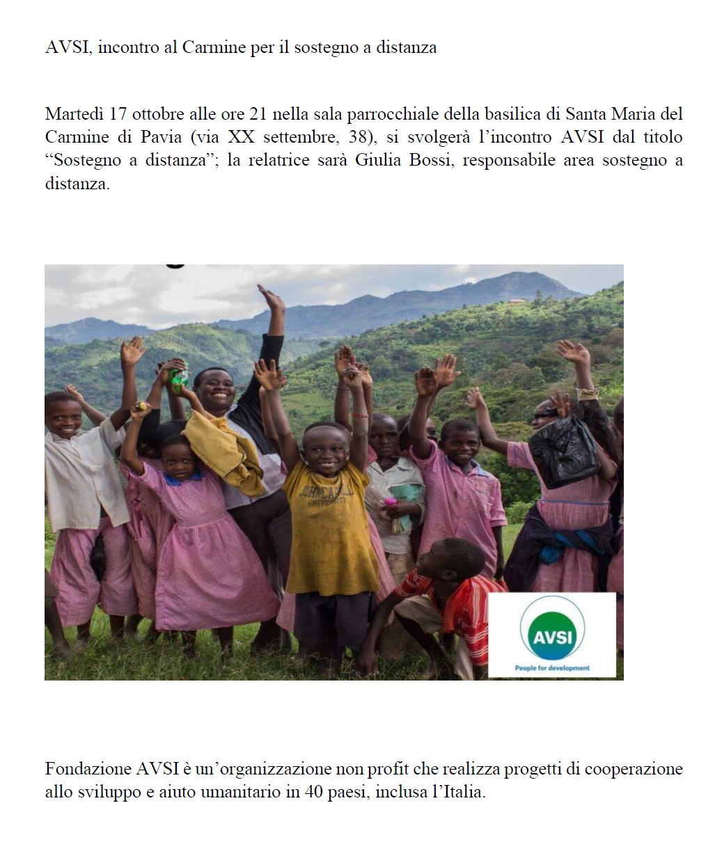 -AVSI, incontro al Carmine per il sostegno a distanza